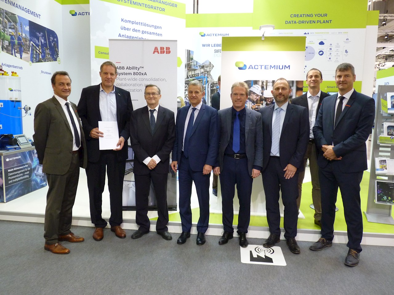 從左到右:ABB控制技術德國及瑞士區域產品銷售經理Harry Weigand,Actemium公司品牌業務拓展總監Wolfgang Thoma,ABB控制技術業務單元全球負責人Ilpo Ruohonen,VINCI Energies副總經理/Actemium公司品牌總裁Bernard Latour,Actemium Schweiz AG總經理Patrick Vergult,ABB控制技術全球產品組合作伙伴和項目經理Gregor Kilian,ABB控制技術全球合作伙伴發展經理Fernando Cordeiro,ABB控制技術全球生命科學業務經理Gero Lustig