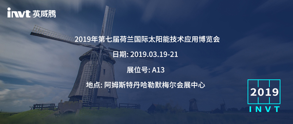 3月19-21日,英威騰光伏將參加2019第七屆荷蘭國際太陽能技術應用博覽會。我們誠邀您蒞臨A13展臺參觀指導與洽談!