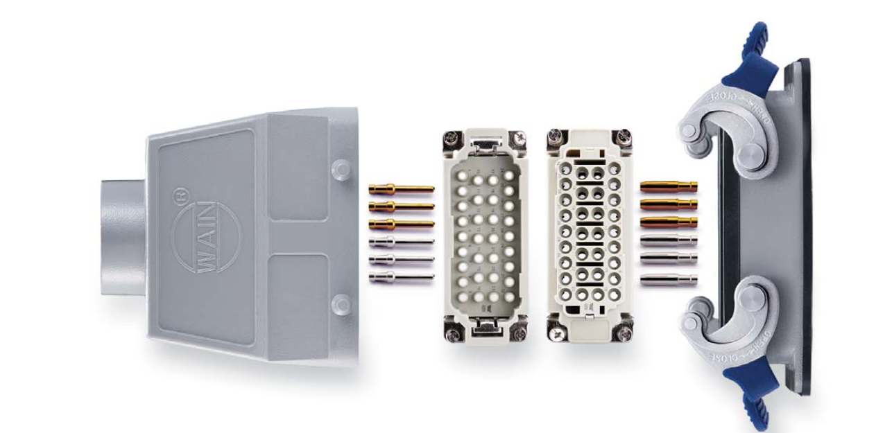 WAIN重載連接器主要用于不同設(shè)備或功能單元之間的電氣或信號連接,其豐富的連接組合為復(fù)雜控制設(shè)備的安裝和維護(hù)提供了極大的便利。HEE系列產(chǎn)品主要技術(shù)特性(工作電流:16A 工作電壓:500V,工作溫度范圍:-40℃~+125℃,回路數(shù):10,18,32,46,