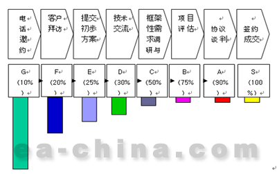 銷售過程需要分解成為幾個標準化的階段,例如:工業品項目銷售過程為:(如下)