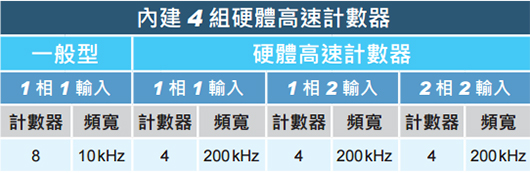 ▲ 支持4組200kHz硬件高速計數器