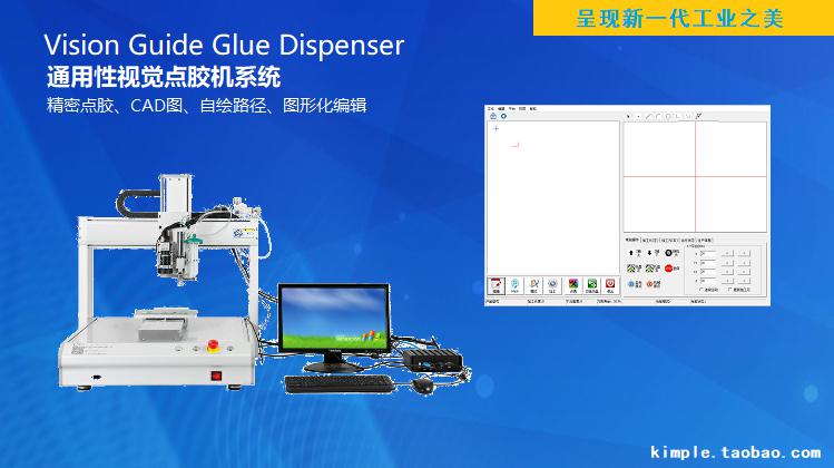支持噴膠或普通點膠。使用全局相機進行編程,取代普通點膠機視覺系統采用的示教模式編程。編程方便、簡單快速、不漏編、不錯編、提高操作速度和效率,節省轉產時間或新產品上線時間。 主要功能 1. 支持雙托盤或單托盤工作。 2. 最多支持3個相機,2個全局相機進行圖形化和可視化編程。 3. 比示教模式的編程系統平均快10倍,大型或復雜的工件更加明顯。 4. 任意改變出膠頻率,局部鏡頭進行高精度定位,實現精密點膠。 5. 支持所有普通點膠機的功能,如陣列,MARK補償等。 6. 自繪圖元包括點、圓、直線、多段線、L型、U型等。 7. 歪斜偏移工件自動進行補正。 適用設備精密點膠、上色、噴漆設備主要操作