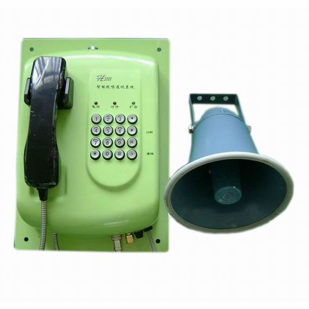 智能抗噪擴音電話(指令電話)采用數字降噪處理技術,抗噪聲功能可在120dB高噪音惡劣環境下清晰通話。擴音功率可達15-25W。聽筒和話筒都采用高抗噪音型的工業聽筒和話筒,電路板所有元器件都均采用專業通訊組件和進口的工業電子元器件,整機性能穩定。具有智能濾除現場噪音功能,不會將現場的噪音傳到對方。使雙方清晰通話。并且具有防塵、防水,按照指令遠程自動開機、自動掛機,自動擴音,雙工對講等功能。本機最大的特點就是:抗噪聲能力強、性能穩定、安裝和維修方便。
