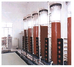 中水回用,一方面為城鎮供水開辟了第二水源,可大幅度降低“上水”(自來水)的消耗量;另一方面在一定程度上解決了“下水”(污水)對水源的污染問題,起到既經濟又環保的作用。  目前中水主要用于以下兩方面:  1、生活雜用水,用于沖廁所、洗地、綠化、景觀等;  2、生產用水; 恒田公司在中水回用設備/工程方面,根據客戶對回用水的要求標準而采用不同的處理技術,主要包括:物質分離與生化處理、 RO反滲透、MBR生物反應膜、離子交換、活性炭吸附等技術; 離子交換法回收 離子交換法回收的目的是將溶解于水中的無機離子排除,原理說明如下:陽離子交換樹脂用氫離子(H+)來交換陽離子;而陰離子交換樹脂則利用氫氧根離子(OH-)來交換陰離子,可以靠電阻(esistivity)或導電度(conducivity)來判斷去離子功能是否有效。離子交換樹脂與各陰陽離子的新和力強度如下:Ba2+>Pb2+>Sr2+>Ca2+>Ni2+>Cu2+>Co2+>Zn2+>Mg2+>Ag+>Cs+>K+>NH4+>Na+>H+>SO42->I->NO3->NO2->Cl->HCO3->OH->F-