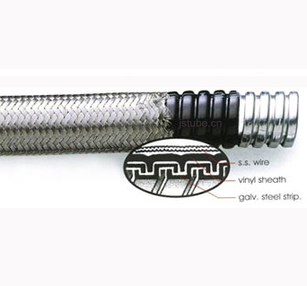 JSF-JSHG不銹鋼編織軟管內管為防水防靜電PVC披覆上海京生電器有限公司標準鍍鋅金屬軟管或不銹鋼軟管披覆PVC,能提供良好的機械保護及防水功能;