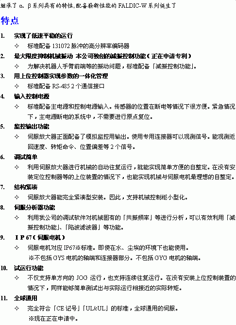 富士W系列伺服電機(jī)