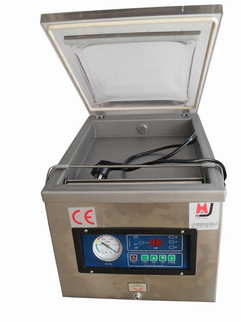 小型真空包裝機;型號:ZF-260產品介紹:臺式真空包裝機的功能是抽掉塑料包裝袋內的氣體,此外還有抗壓、阻氣、保鮮等作用。但是,有許多食品不適宜采用真空包裝而必須采用真空充氣包裝,食品經真空包裝后,塑料袋內充氣壓強大于包裝袋外大氣壓強 ,能有效防止食品受壓破碎變形 ,并不影響包裝袋的外觀及印刷。 本機采用透明的有機玻璃蓋, 對包裝過程一目了然,具有抽真空、封口、印字、冷卻一次完成之功能,機體面板上設有抽真空時間、熱封時間、冷卻時間及溫度高低等按鍵,根據實際包裝物品設置,以達到最佳包裝效果。用途范圍:家用真空包裝機的用途非常廣泛,以塑料復合薄膜或塑料鋁箔復合膜為包裝材料,對固體、液體、粉狀、顆粒、糊狀的食品、糧食、醬菜、藥品、電子元件、儀器儀表等物品進行真空包裝。電子原件、半導體產品經過真空包裝后,可以有效防靜電、防氧化、防潮,從而可以長期的保存,而不會因為外部原因導致損壞。 技術參數:型號260電壓220(V)功率370(W)封口長度260(mm) 熱封條數1極限真空 -0.1 (≤MPa) 抽氣速度10(m3/h) 工作效率2~3(t/min) 真空室尺寸(mm)260×360×90  外型尺寸330×480×380 (mm)